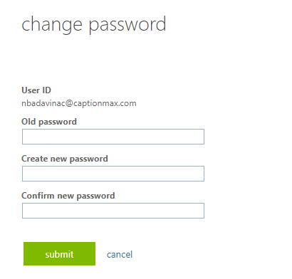 Following that, fill out your old and new passwords, and select submit. Requirements: 14 characters, 1 number, 1 upper case, 1 lower case, and one special character. Passwords are good for 365 days.