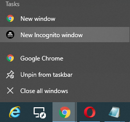Open up an incognito Chrome or private Firefox tab by right clicking on the browser in your task bar and selecting one of the two.