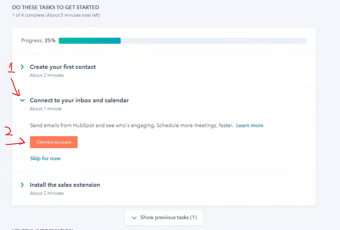 You should get moved back to the Hubspot tasks page to install the Outlook plugin.
