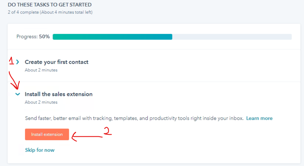 Install the sales extension should be shown already, if not click on the arrow next to "install the sales extension" until you see "install extension" and select that.